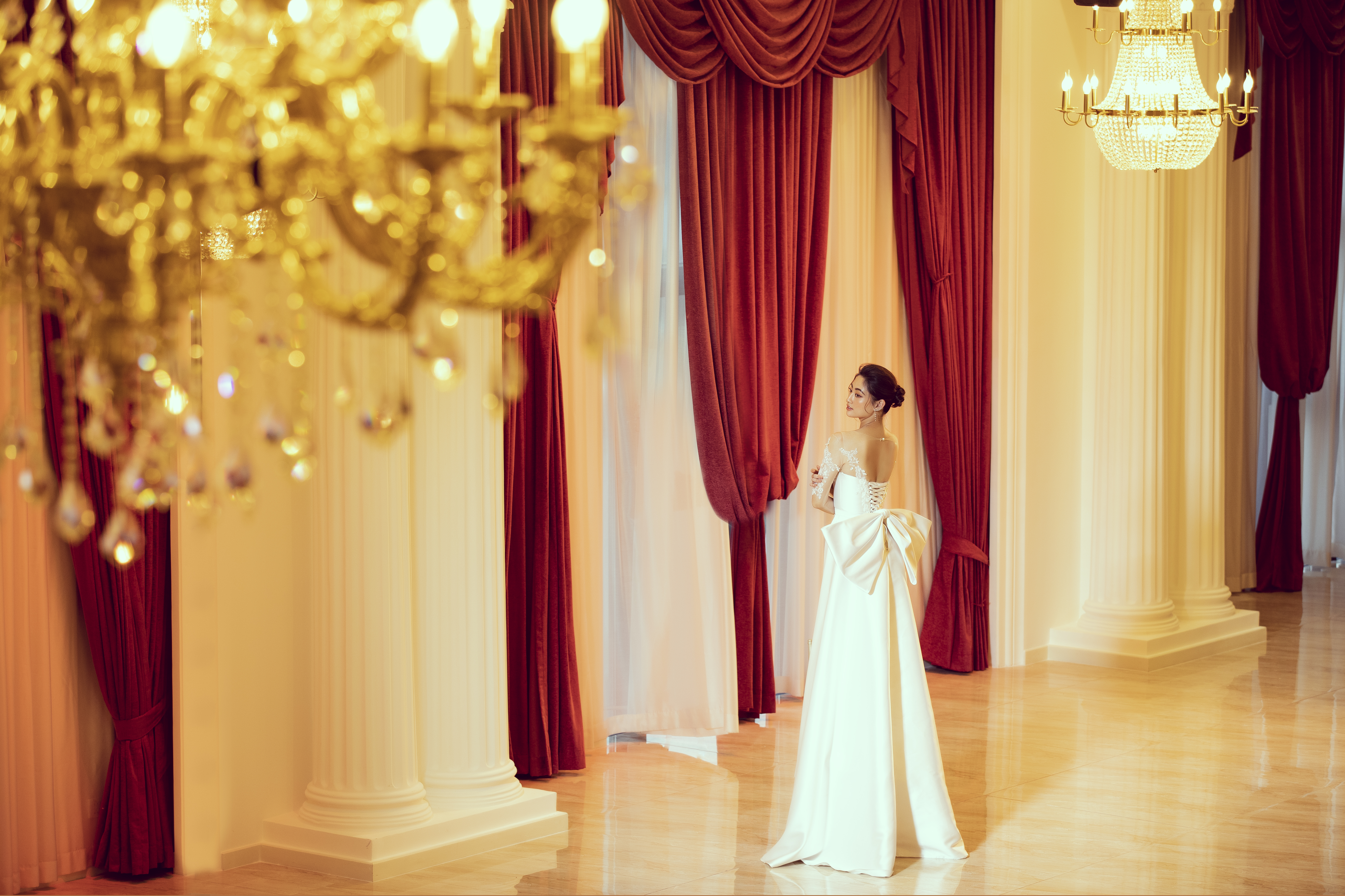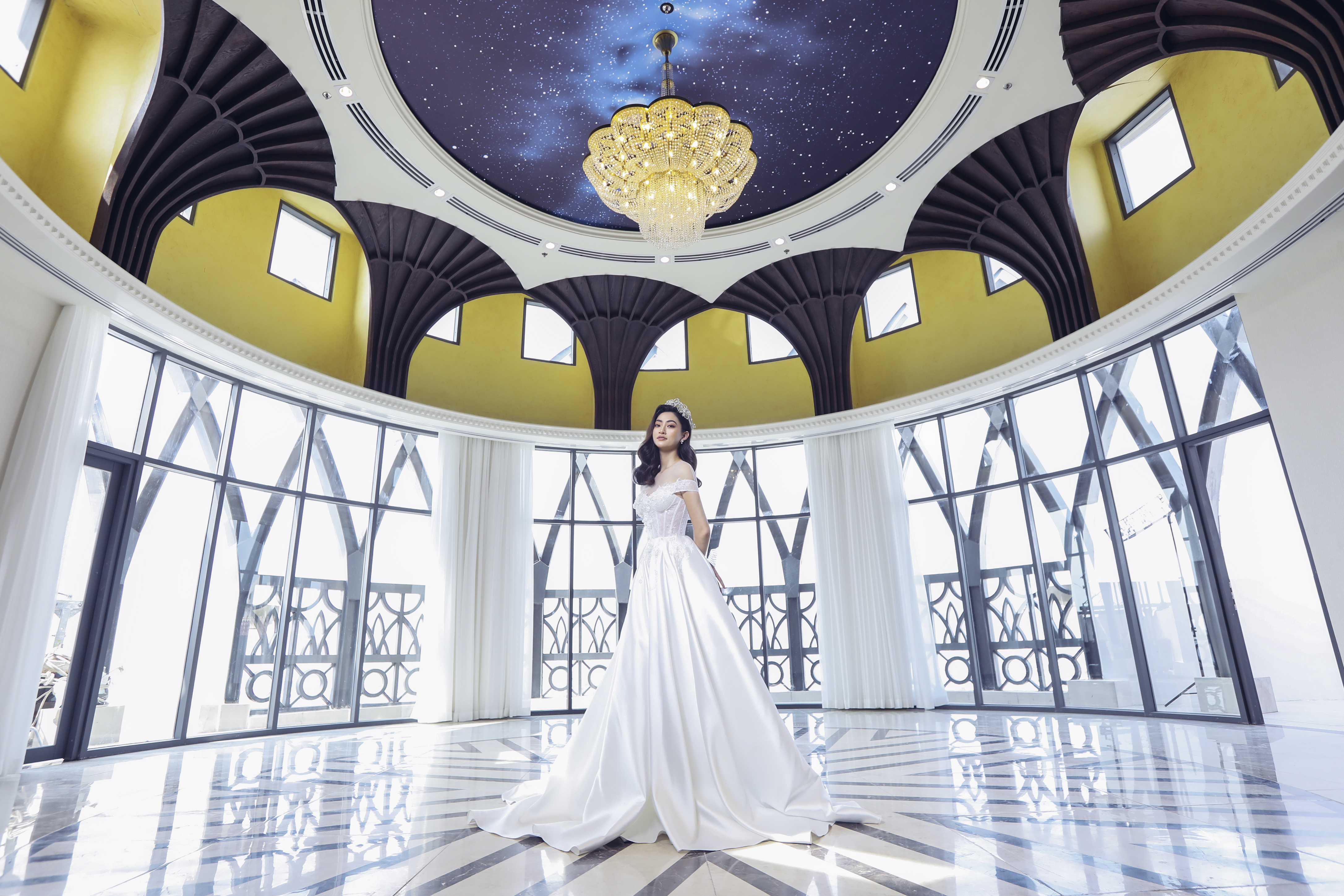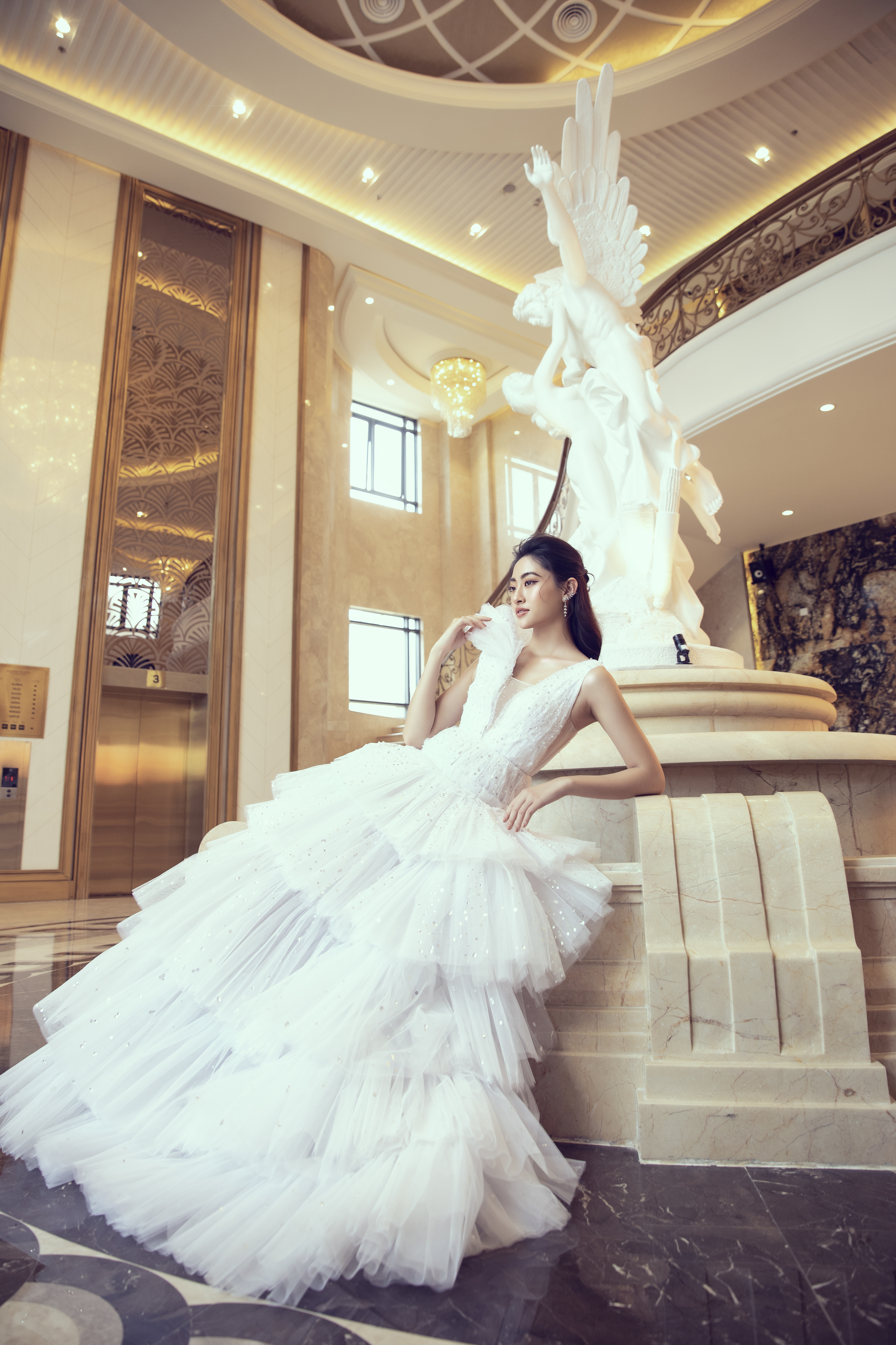 Giữa không gian sang trọng, Lương Thùy Linh mang vẻ đẹp sang trọng, kiều diễm. Lương Thùy Linh đã không ngại thả dáng trên lan can sân thượng của tòa nhà cao tầng. Tạo hình của Lương Thùy Linh thể hiện tiếng gọi vang vọng thu hút mọi sự chú ý đổ dồn về cô nàng Lọ Lem, khi ước mơ được khoác lên mình bộ cánh sang trọng sánh vai cùng nửa kia bước đi trong không gian cưới choáng ngợp trở thành hiện thực.
