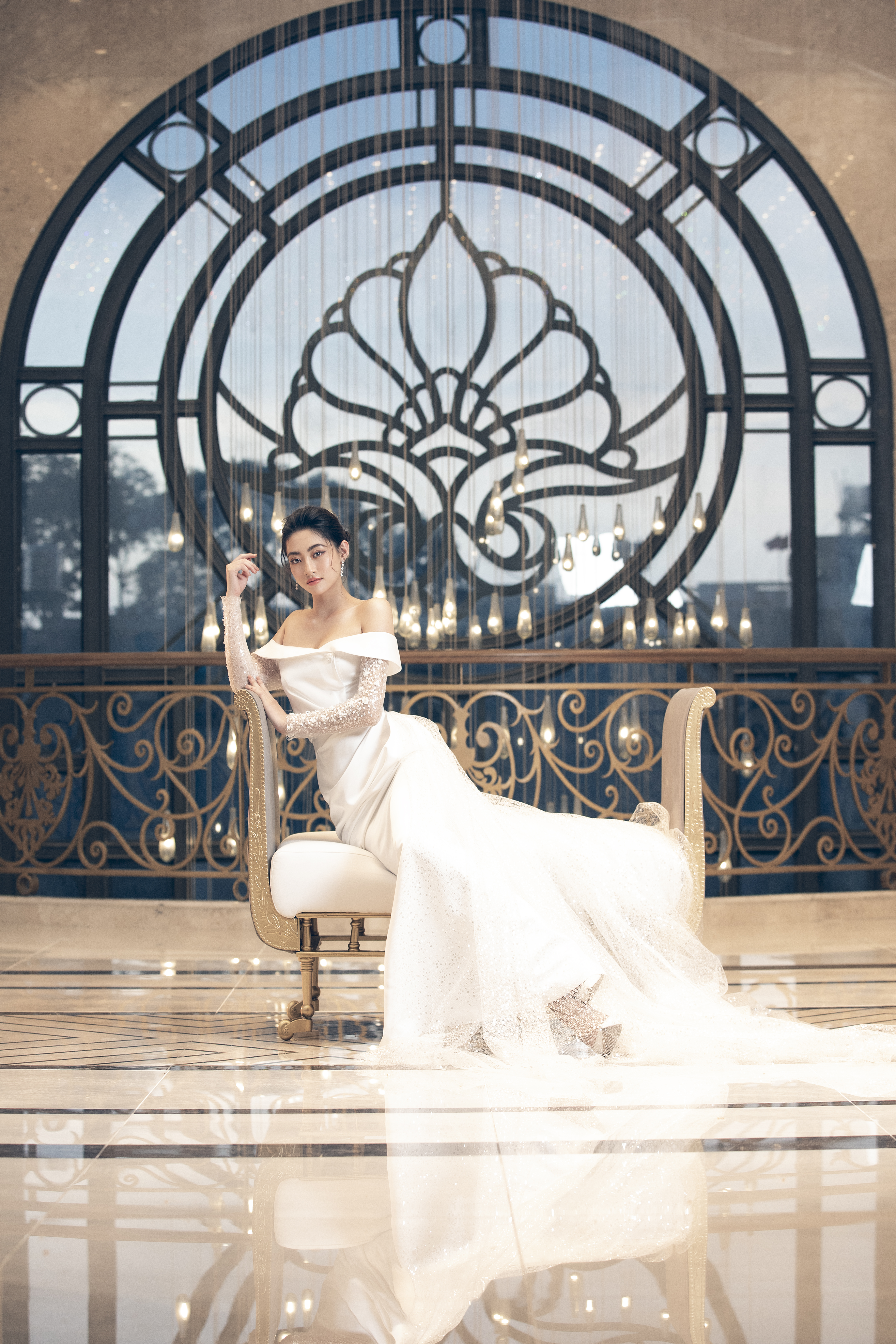 Trong bộ ảnh mới, nàng hậu gốc Cao Bằng trở thành nàng thơ của NTK Lê Ngọc Lâm qua bộ sưu tập váy cưới mới nhất mang tên “I’m Yours”. Đi cùng thông điệp “Say yes to the dress”, Lương Thùy Linh góp phần định vị xu hướng thời trang cưới Việt trong giai đoạn nửa cuối năm nay, hiện thực hóa mộng mơ mà các cô dâu luôn ấp ủ: Trở thành nàng Lọ Lem tìm thấy hạnh phúc của cuộc đời mình.