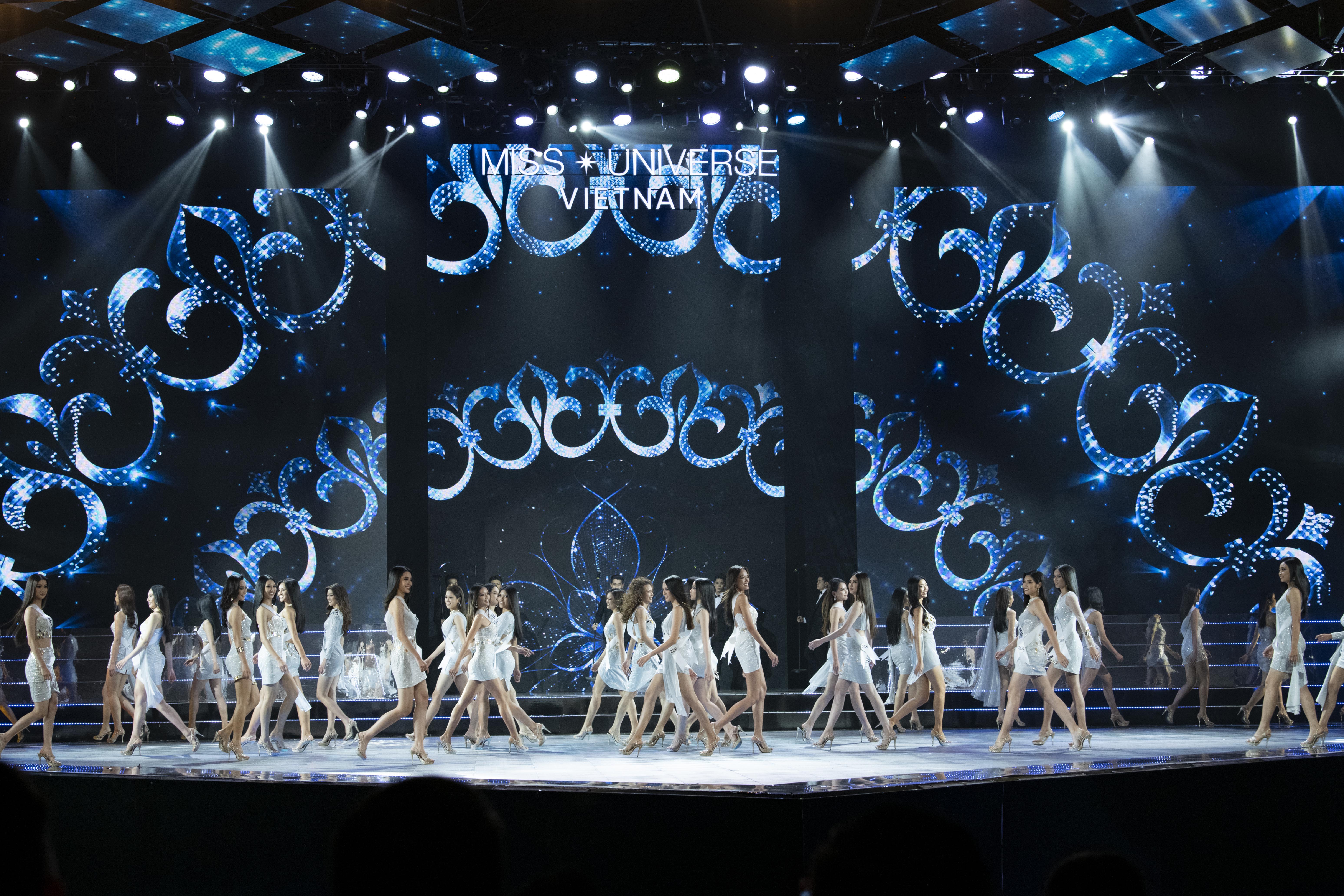 Trên sân khấu, 44 người đẹp đại diện cho nhiều tỉnh thành khác nhau của cả nước sải những bước đi vô cùng năng lượng và tự tin. Dưới nền nhạc sôi động đặc trưng của cuộc thi Miss Universe, các thí sinh dõng dạc hô vang tên quê hương trong niềm tự hào.