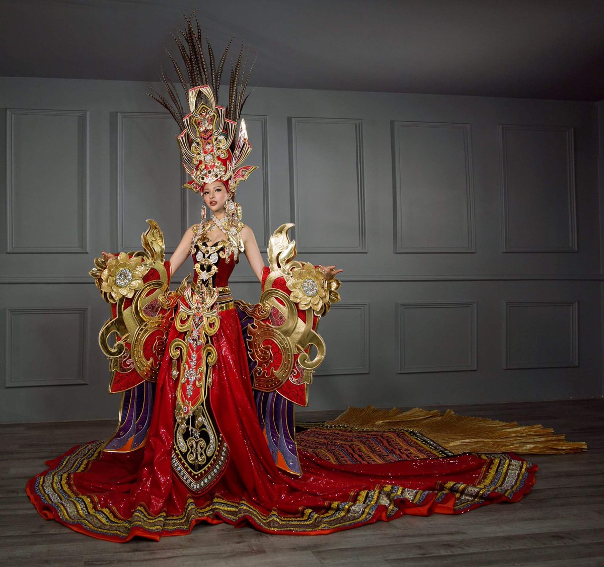 Phá nát trang phục dân tộc trên nền bộ áo dài truyền thống của Việt Nam, Victoria Thúy Vy còn khiến nhiều người liên tưởng đến lễ hội Carnaval hay trang phục biểu diễn của những vũ công trong vở kịch sân khấu.