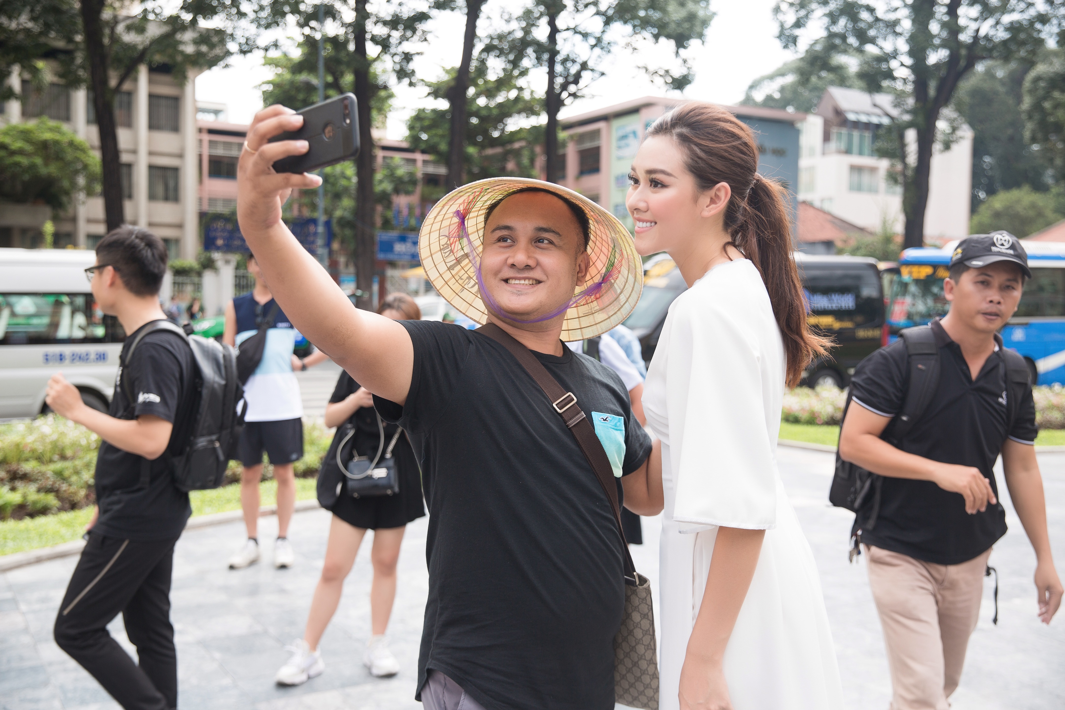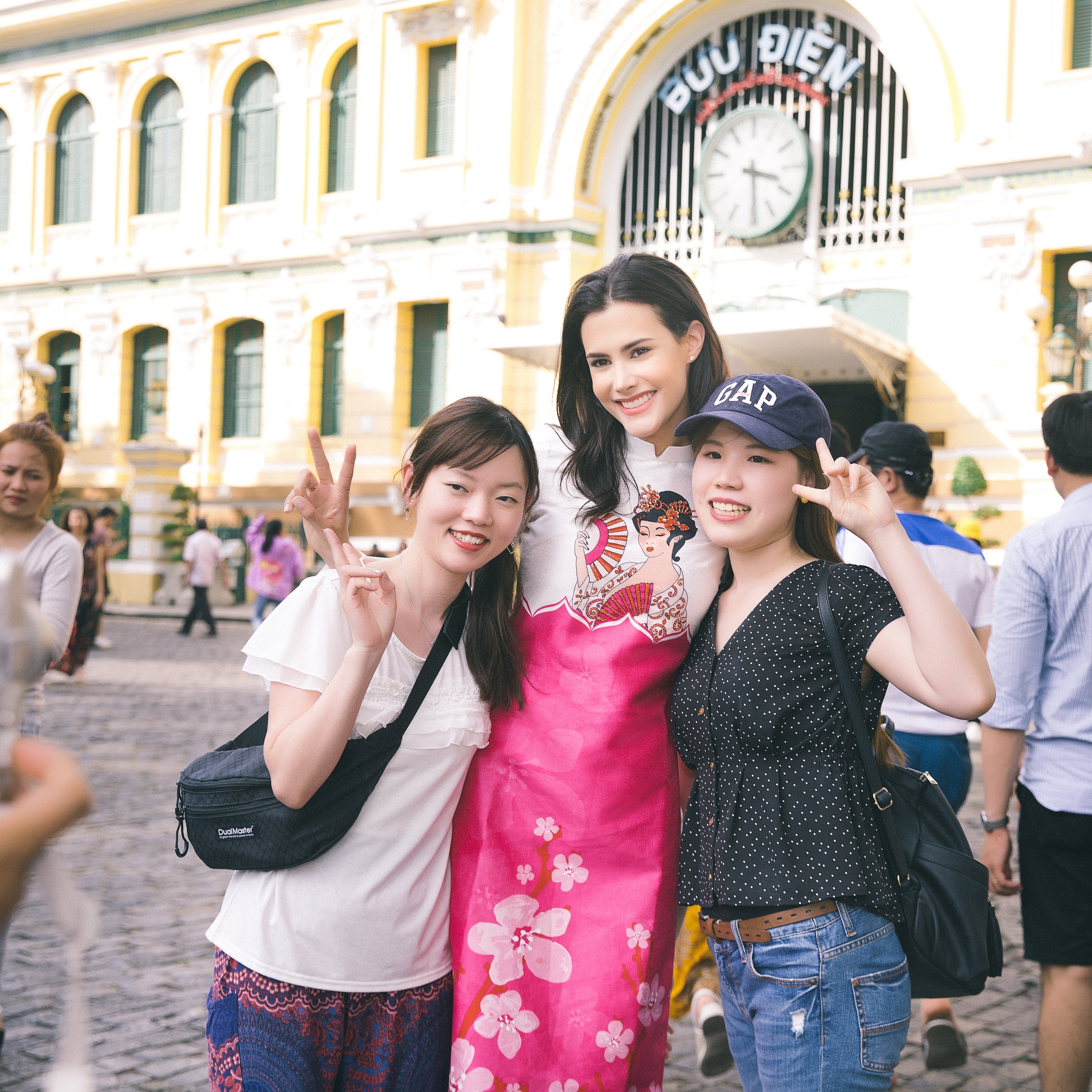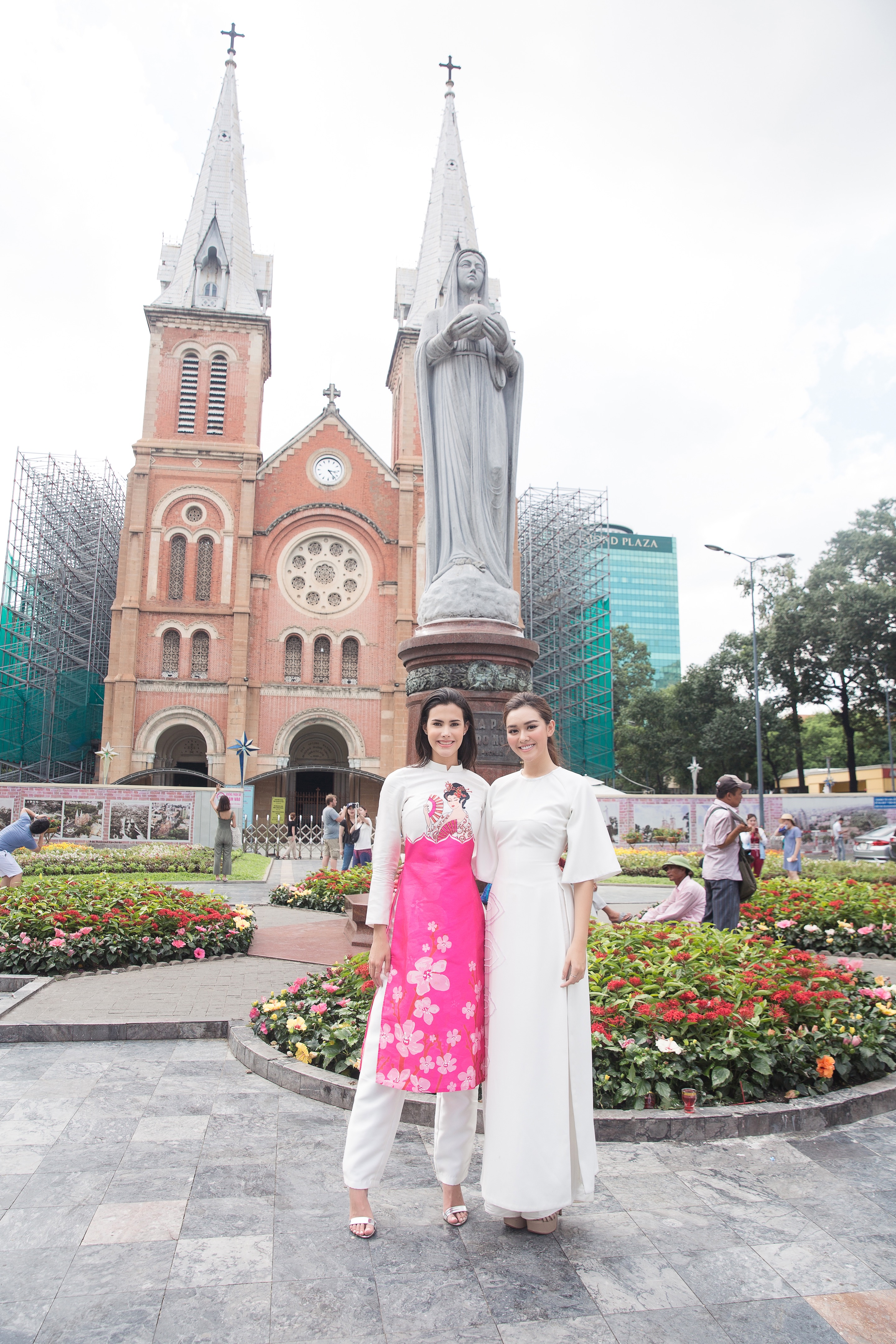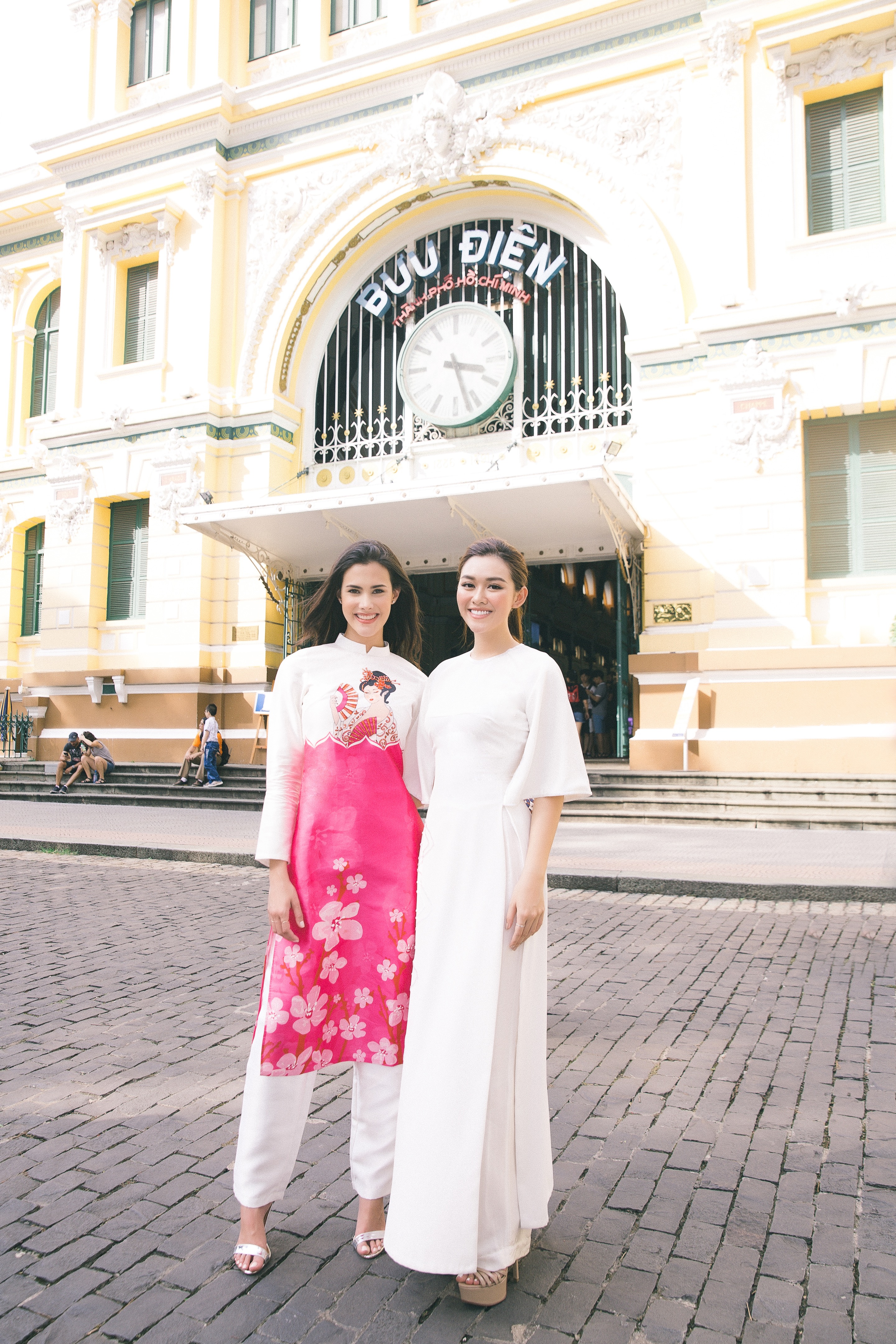 Hoa hậu Quốc tế Mariem Velazco và á hậu Tường San cùng diện áo dài dạo phố Sài Gòn.
