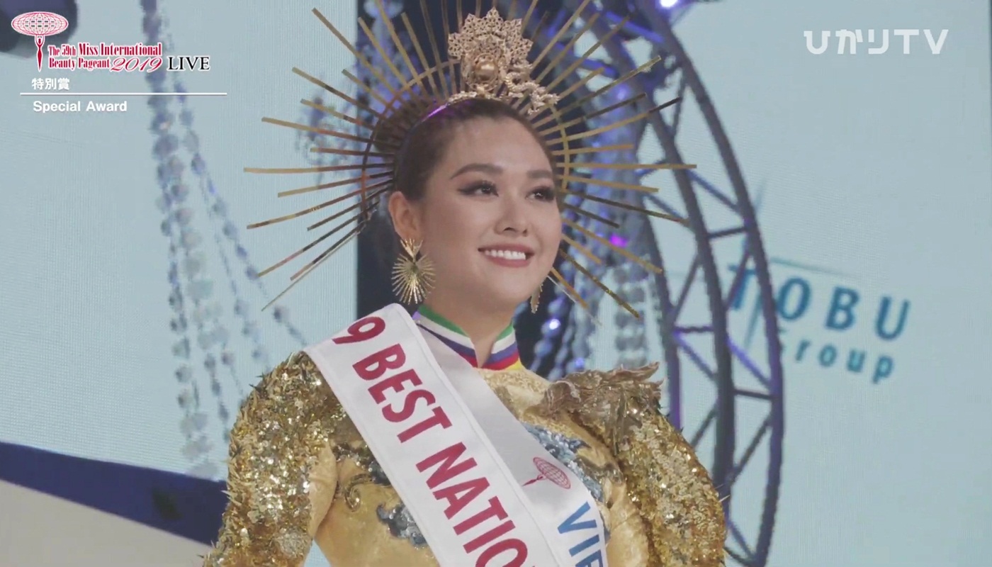 Tường San vừa được xướng tên ở hạng mục Trang phục dân tộc đẹp nhất tại Miss International 2019.