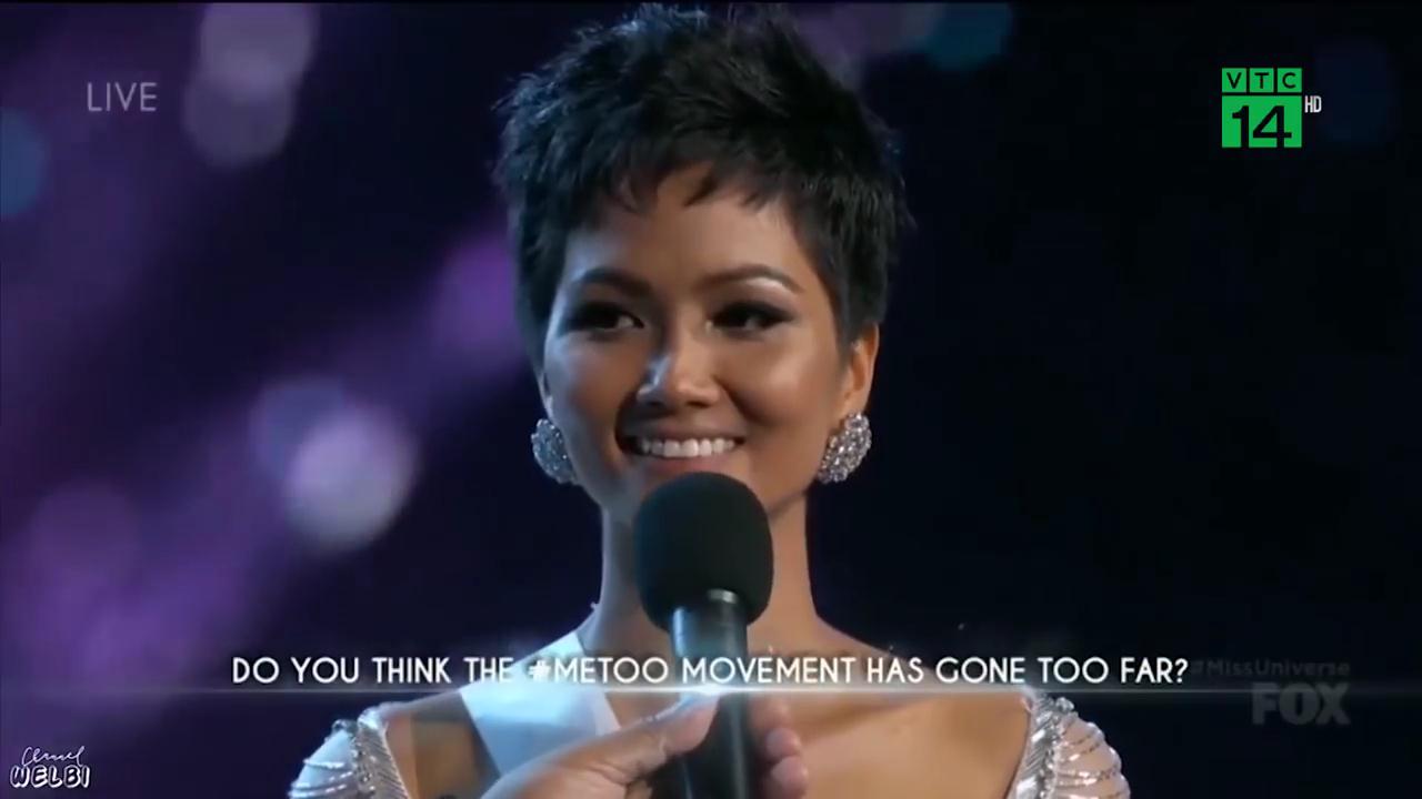 Trong phần trả lời ứng xử Top 5, công bằng mà nói H’Hen Niê là đại diện bốc thăm trúng câu hỏi rất khó cả về thông điệp truyền tải cộng với hình thức diễn đạt: “The #MeToo movement has sparked a global conversation. In response, some have said the world has become too politically correct? Do you think the #MeToo movement has gone too far?”.