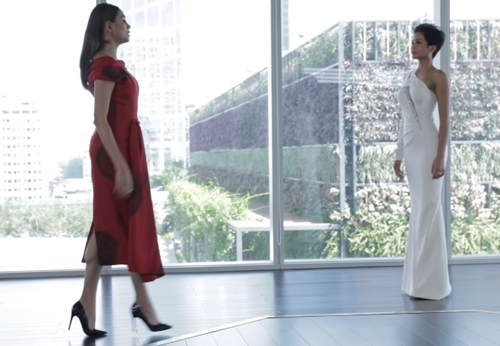 Màn thị phạm của Võ Hoàng Yến cho H'hen Niê về bài học khắc phục yếu điểm catwalk bị ưỡn lưng.
