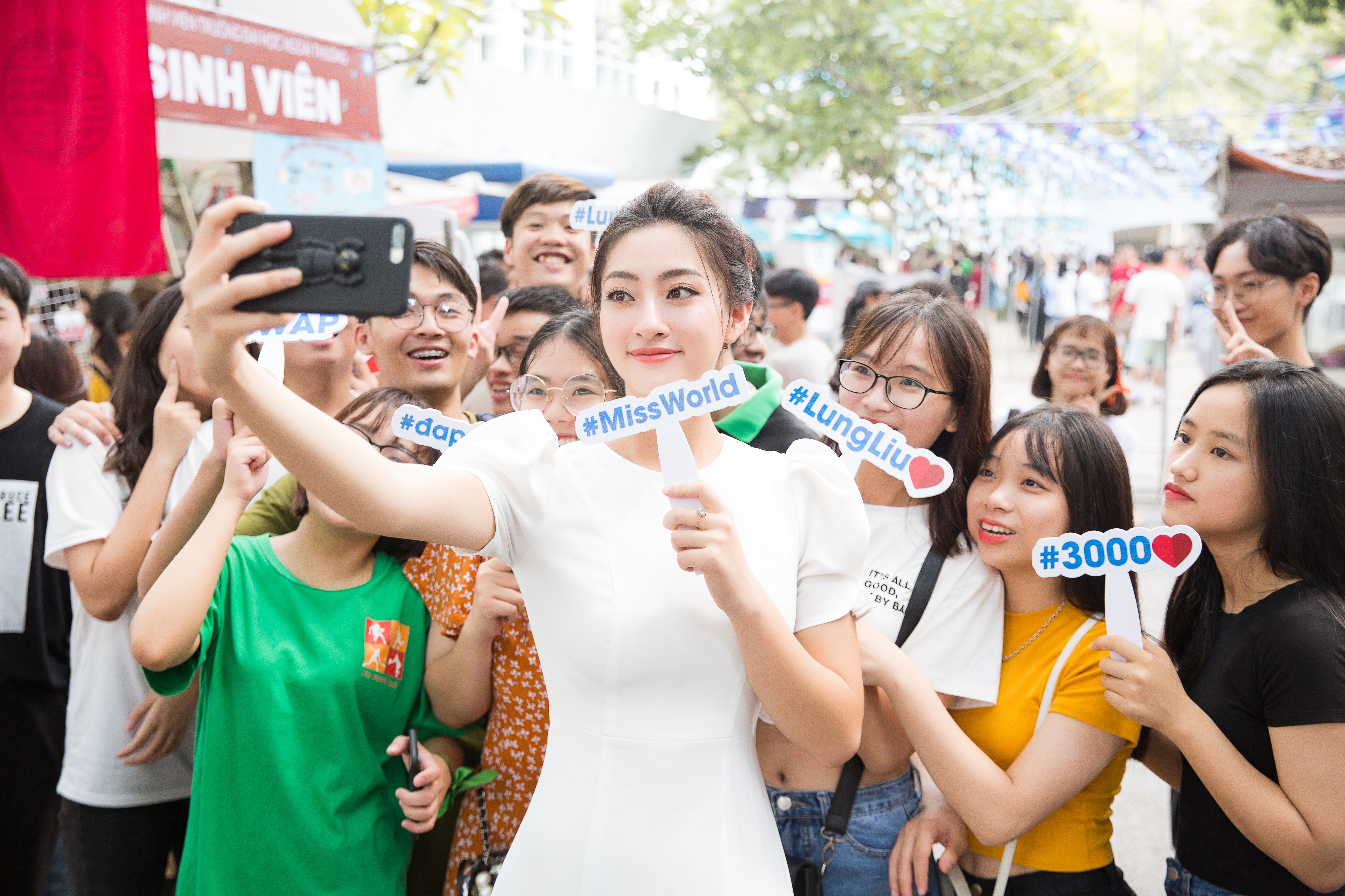 Ôm thùng tiền đi khắp khu vực sân trường, với sự chân thành và tinh thần quyết tâm, hoa hậu Lương Thùy Linh đã khơi dậy tình thương bên trong các bạn trẻ. Hào hứng ủng hộ nàng hậu, nhiều bạn rất ấn tượng với Dự án nhân ái mà đại diện Việt Nam mang đến đấu trường nhan sắc Miss World 2019.