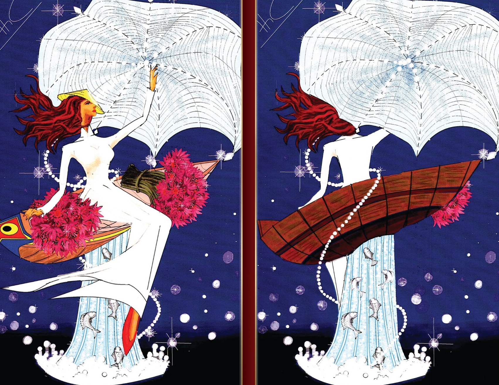 Điểm cộng lớn nhất cho mẫu thiết kế Áo dài tung lưới chính là tính hiệu ứng sân khấu. Mặc dù chỉ là bản vẽ sơ khai nhưng rõ ràng cuộc thi năm nay thu hút rất nhiều những ý tưởng độc đáo và vô cùng sáng tạo.