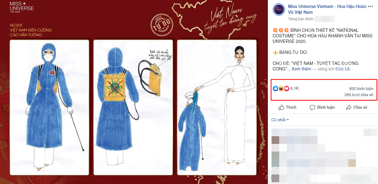 Mẫu thiết kế nhận hơn 6.000 lượt thích cùng hàng trăm lượt chia sẻ của khán giả.