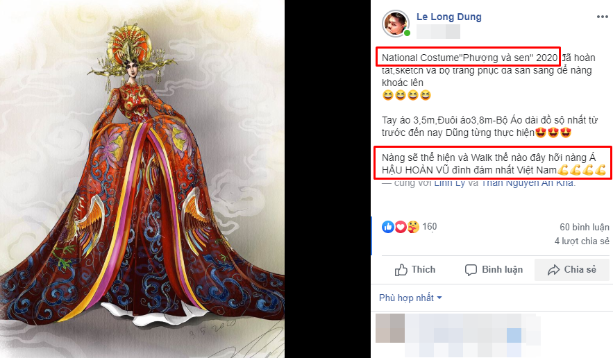 Dù chỉ mới là thông tin ban đầu, thiết kế này cũng chưa có thông tin xác nhận đây có phải là National Costume chính thức của Việt Nam tại đấu trường nhan sắc quốc tế năm hay hay không nhưng với dòng chữ á hậu Hoàn vũ đình đám nhất Việt Nam, fan rất tò mò về vai trò mới của các người đẹp trong thời gian sắp tới.