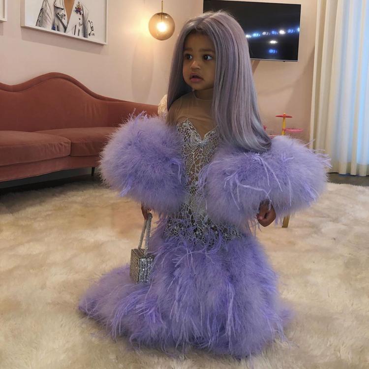 17. Cô nàng tâm đắc chiếc váy tím huyền thoại của Versace đến nỗi còn may một bộ mini cho con gái Stormi Webster.