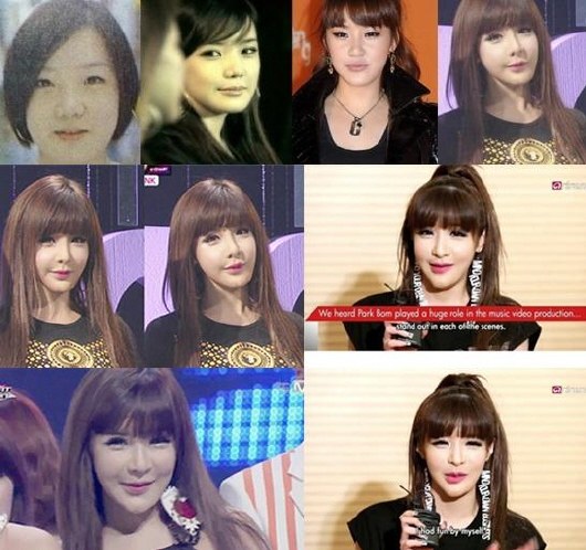 Gương mặt phù nề, mắt to quá cỡ và đôi môi cong của Park Bom là minh chứng rõ ràng cho việc cô nàng lạm dụng phẫu thuật thẩm mĩ. Fan bênh rằng do Bom bị bệnh nhưng có lẽ ai cũng đã thầm thừa nhận đây không phải là một gương mặt tự nhiên. Công nghệ trang điểm hiện đại không thể khiến mặt Park Bom đổi khác như thế này được.