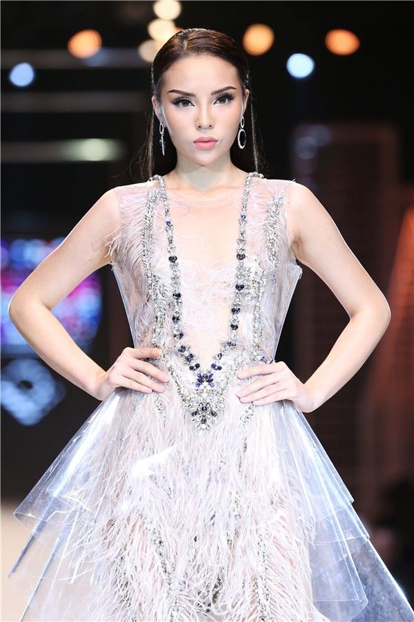 Trên sàn runway cũng vậy, trang phục xuyên thấu cũng không làm Duyên gợi cảm như hiện tại.