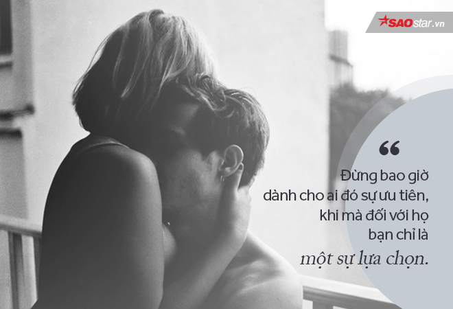 Họ có nhiều hơn là chỉ một mình bạn, có nhiều hơn một con đường để đi. Chuyện gì cũng được, nhưng chỉ trong tình yêu, đừng để mình trở thành một sự lựa chọn hay một biện pháp phòng hờ.