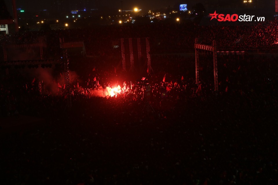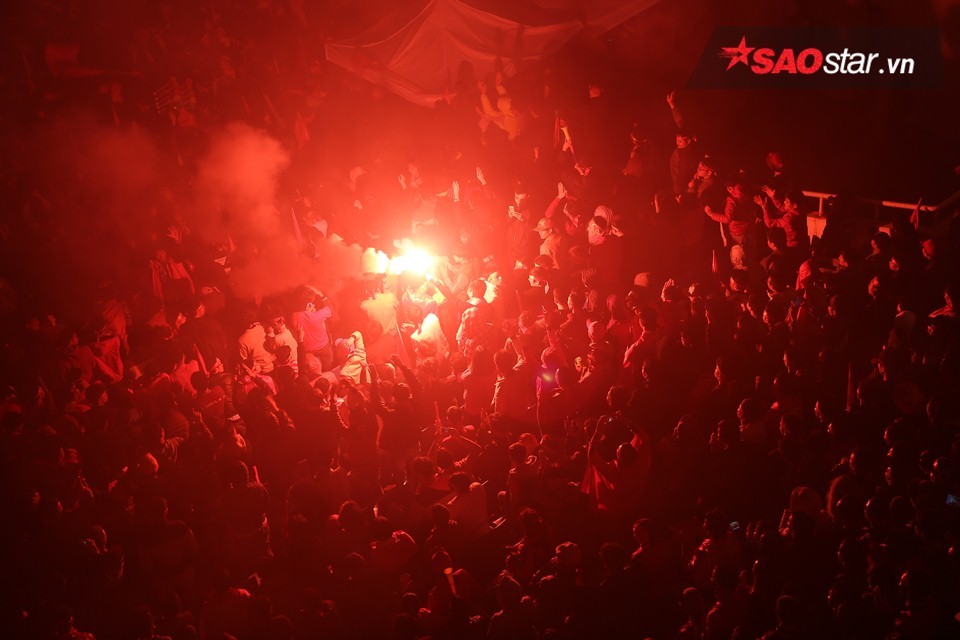 Nhiều CĐV đã đốt đuốc ăn mừng ngay sau bàn gỡ hòa của cầu thủ Quang Hải.