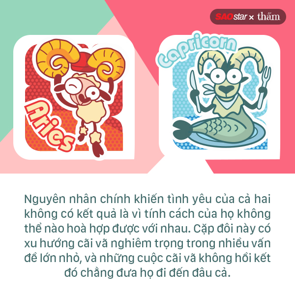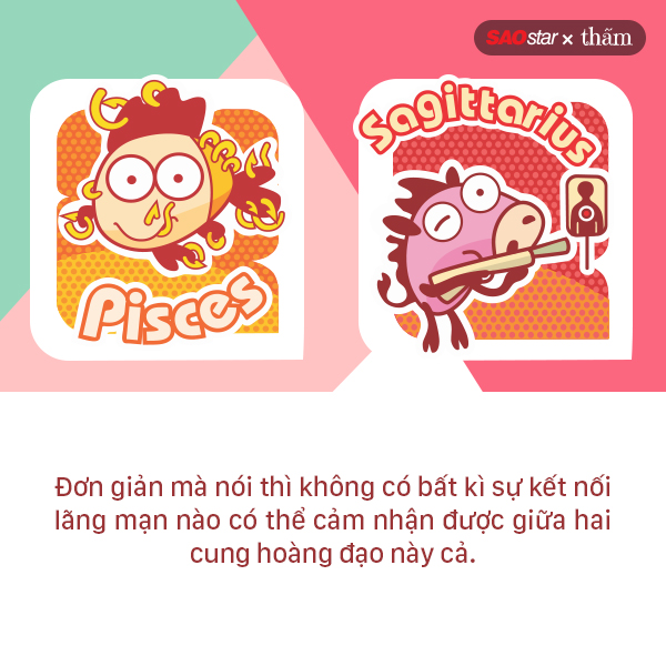 Đơn giản mà nói thì không có bất kì sự kết nối lãng mạn nào có thể cảm nhận được giữa hai cung hoàng đạo này cả. Trên thực tế, họ hoàn toàn có khả năng thu hút đối phương theo lẽ thông thường như hợp cạ về sở thích cá nhân hoặc lý tưởng sống, nhưng một khi quyết định tiến tới một mối quan hệ lãng mạn thì họ lại gặp rất nhiều vấn đề bất cập ngăn họ đến với nhau.