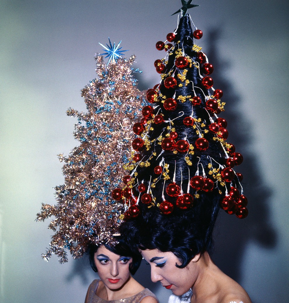 Những kiểu tóc cao tới gần 1,1 m được tạo rất kỳ công cùng kim tuyến và đồ trang trí Noel vào năm 1962. Ảnh: Bettmann.
