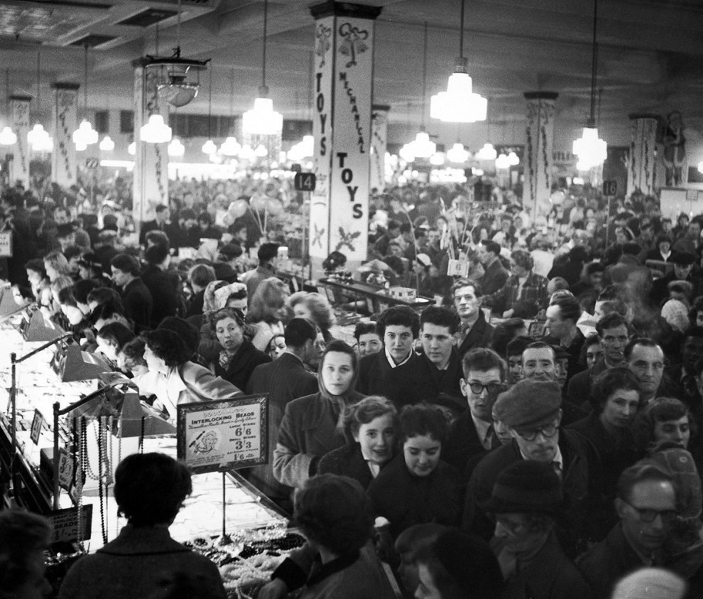 Cảnh mua sắm nhộn nhịp trong dịp lễ Giáng sinh tại cửa hàng Woolworths ở London (Anh) vào năm 1955. Ảnh: Charles Hewitt.