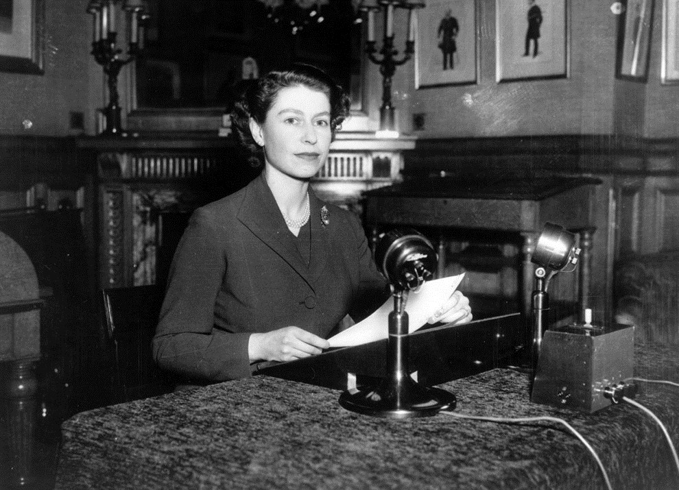 Nữ hoàng Elizabeth II gửi lời chúc Giáng sinh đầu tiên khi mới lên ngôi tới các quốc gia thành viên của Khối Thịnh vượng chung Anh qua đài phát thanh vào năm 1952. Ảnh: Fox Photos.