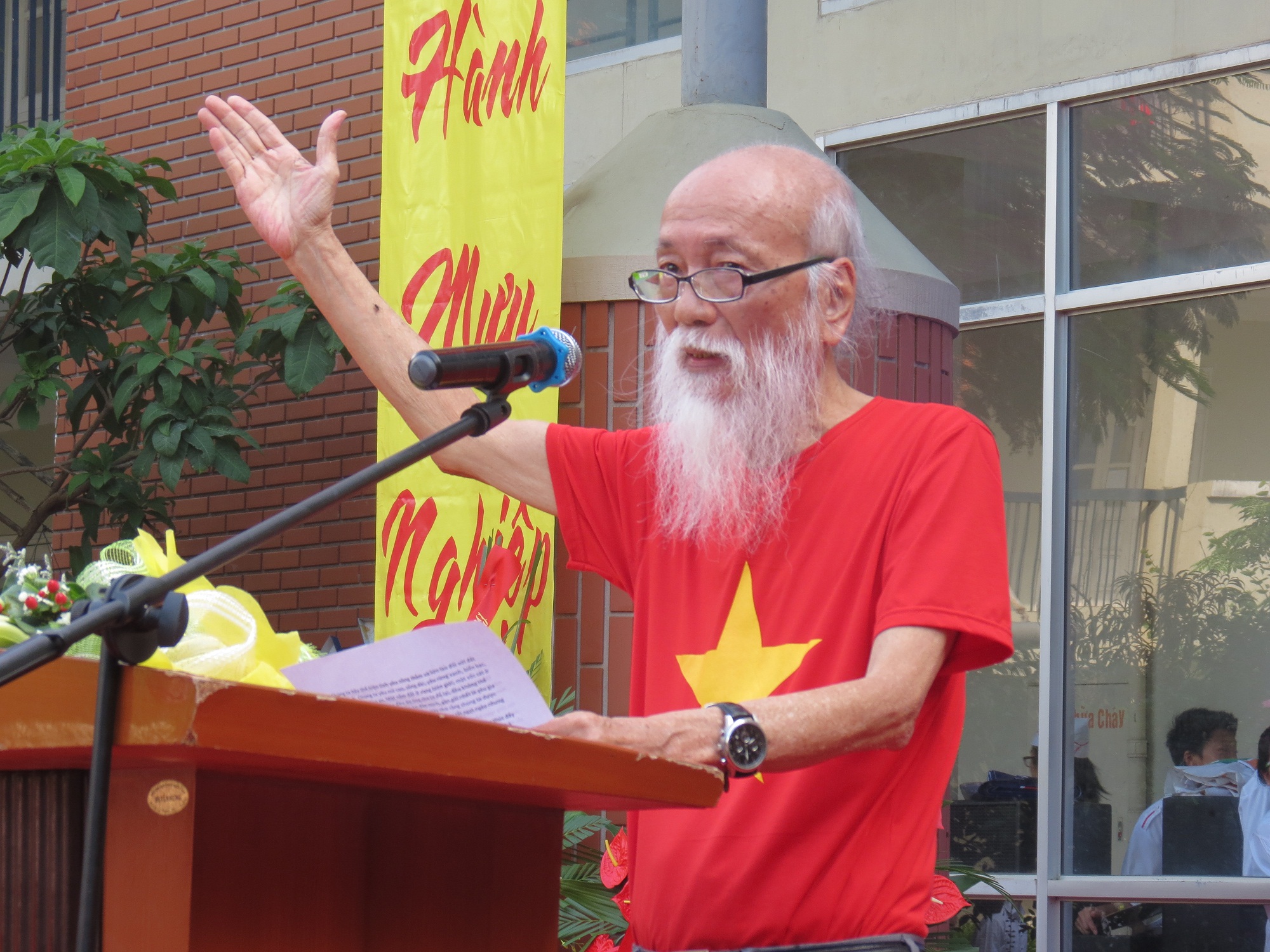 Lễ khai giảng năm 2014, khi vừa phẫu thuật được mấy ngày, bất chấp sự phản đối của các bác sĩ, thầy đã rời giường bệnh, đến dự lễ cùng các bạn học sinh Lương Thế Vinh. Thầy mua áo đỏ in hình sao vàng, tặng cho tất cả mọi người rồi đứng trên khán đài, miệng sang sảng đọc bài diễn văn hùng hồn về tình yêu nước. Lúc ấy, sức khỏe thầy đang rất nguy kịch nhưng tình yêu học trò, yêu đất nước lại quá thiết tha. Người đàn ông 78 tuổi đang gặp cơn lâm nguy như thế, vẫn sẵn sàng truyền đi tất cả nghị lực sống mình đang có.