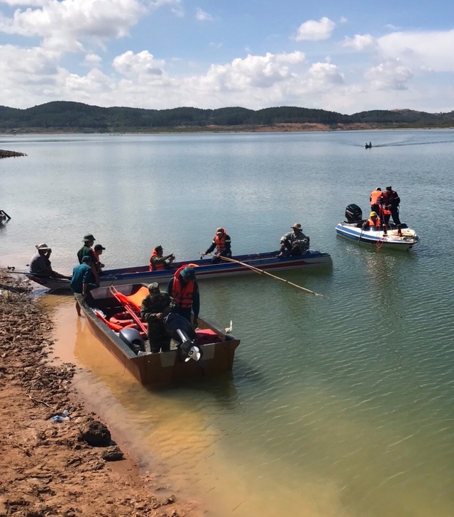 Lực lượng chức năng tìm kiếm 2 em học sinh mất tích trên hồ Đại Ninh. Ảnh: Dân Trí