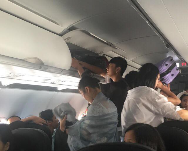 Lúc này, một số người đã có phản ứng không hợp tác, giận dữ. Trong đó, 2 hành khách có hành vi gây rối trên tàu bay, có lời lẽ thô tục và cố xông vào định đấm vào mặt tiếp viên.