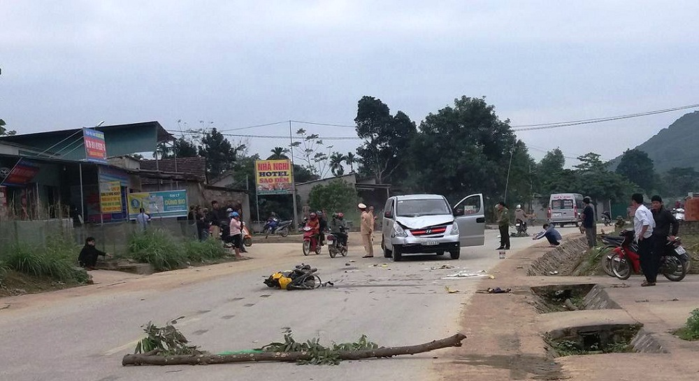 Khi xe đi đến đoạn qua xã Hạnh Lâm, huyện Thanh Chương thì va chạm với xe máy BKS: 37E1 - 046… do một người đàn ông điều khiển, chở một người khác.
