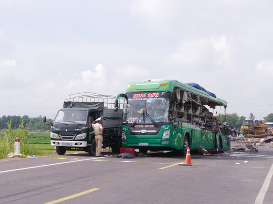 Xe khách bị hỏng nặng sau vụ tai nạn