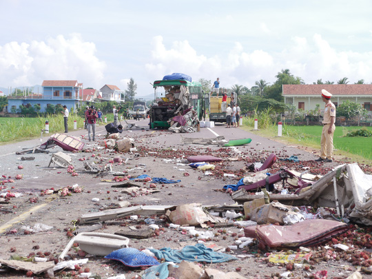 Thông tin ban đầu, khoảng 21 giờ 30 phút tối 16/8, tại đường tránh Quốc lộ 1A đoạn thuộc thôn An Lạc Đông 2, thị trấn Phù Mỹ, huyện Phù Mỹ đã xảy ra va chạm giữa xe đầu kéo BKS 35C- 035.50 kéo rơ moóc 35R- 00176 chở theo 2 máy ủi, do Nguyễn Văn Hương (SN 1989, ngụ tỉnh Ninh Bình) điều khiển theo hướng Bắc - Nam và xe khách 45 chỗ BKS 75B- 001.01, do Nguyễn Long Hồ (SN 1973, ngụ tỉnh Thừa Thiên Huế) điều khiển theo hướng ngược chiều. Vụ tai nạn giao thông đặc biệt nghiêm trọng này đã khiến 5 người trên xe khách tử vong tại chỗ và 2 người bị thương nặng. Tại hiện trường, chiếc xe khách bị hư hỏng nặng phần bên hông và đuôi xe.