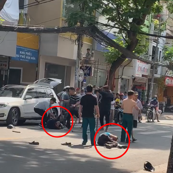 Thấy vậy, nhóm 5 người đàn ông còn lại ngay lập tức tìm hung khí để đánh trả, cả nhóm này cầm gậy, xẻng… lao vào đánh nhau với 2 thanh niên. Hậu quả của vụ hỗn chiến khiến 2 thanh niên đi ô tô bị đánh gục, nằm bệt trên đường. Chưa dừng lại ở đó, khi đối thủ đã nằm bất động, cả nhóm vẫn tiếp tục lao vào đấm, đá dữ dội vào đầu.
