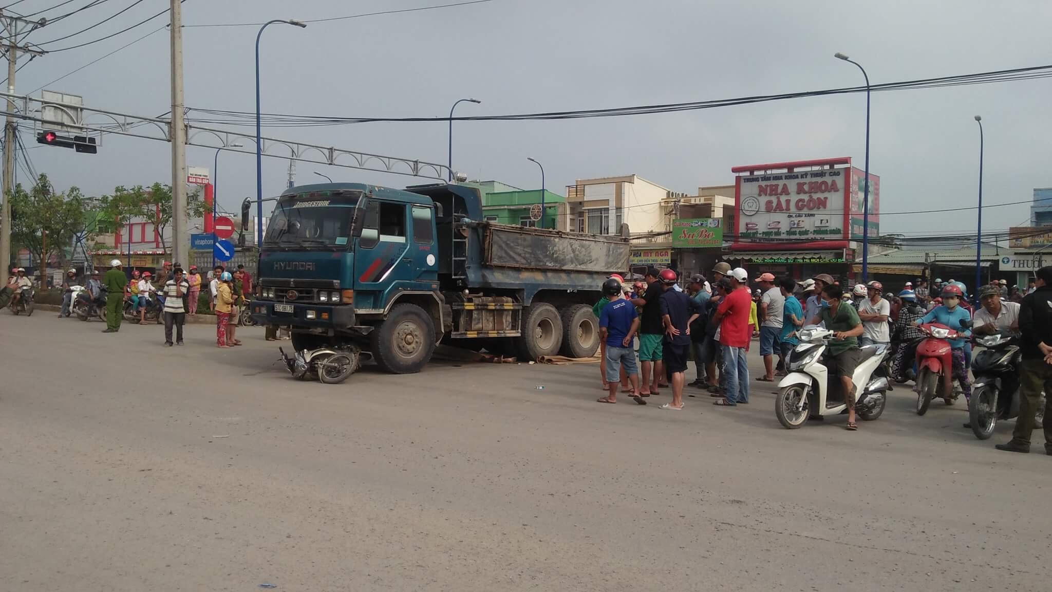 Cú va chạm mạnh khiến đôi vợ chồng ngã xuống đường và bị cuốn vào gầm xe ben tử vong tại chỗ. Xung quanh hiện trường vụ tai nạn, giao thông ùn tắc do quá nhiều người dân hiếu kỳ đứng hai bên đường.