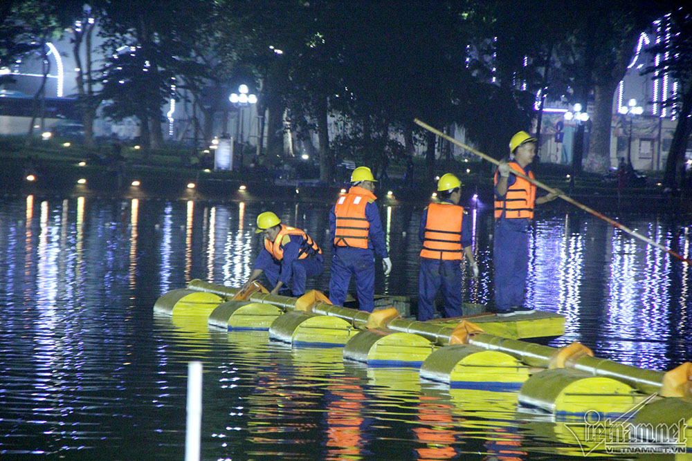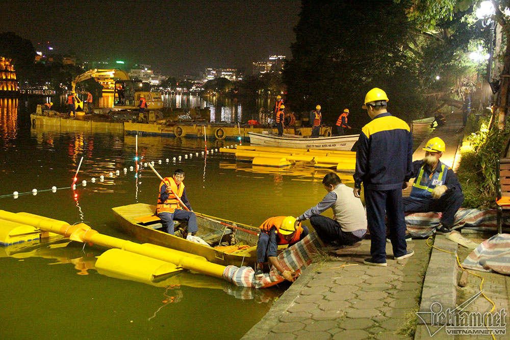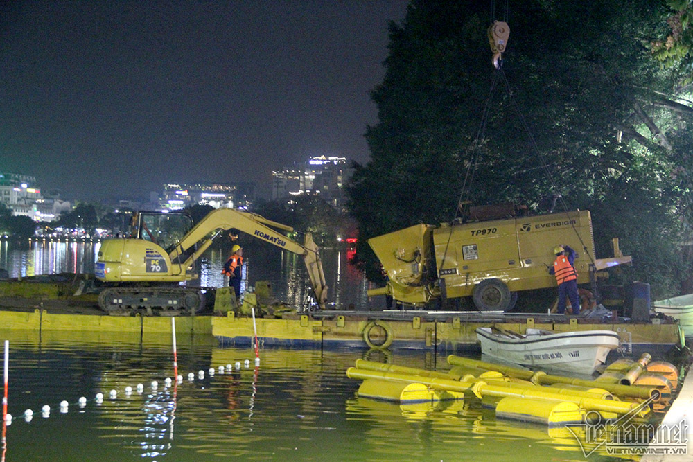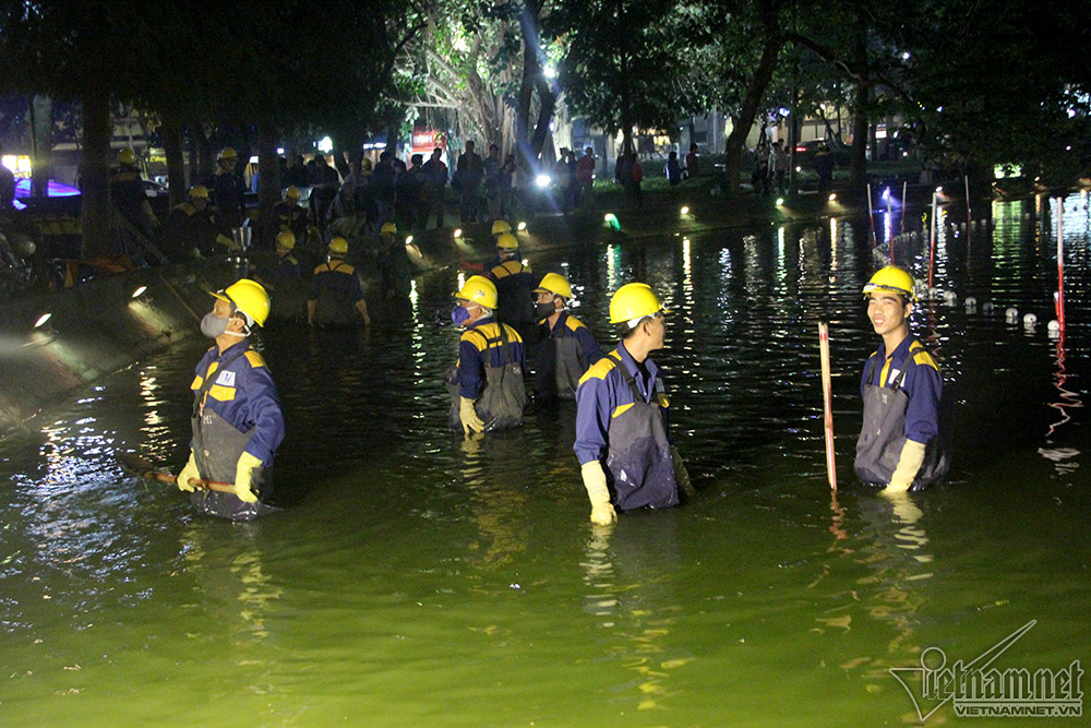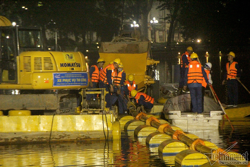 Từ đêm 28.11, hàng trăm công nhân bắt đầu thi công, nạo vét hồ Hoàn Kiếm.