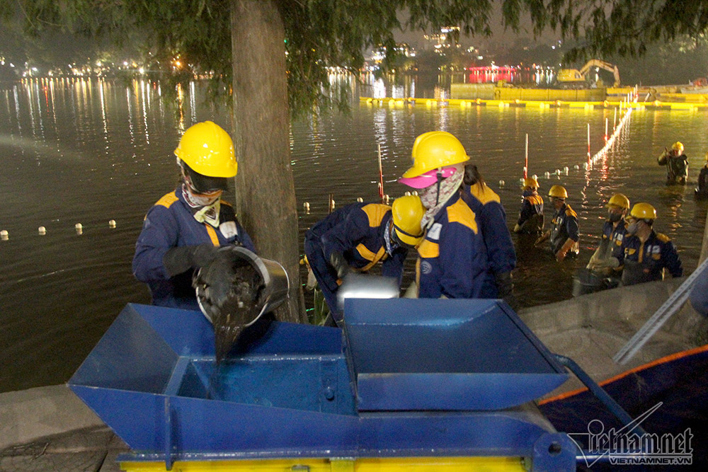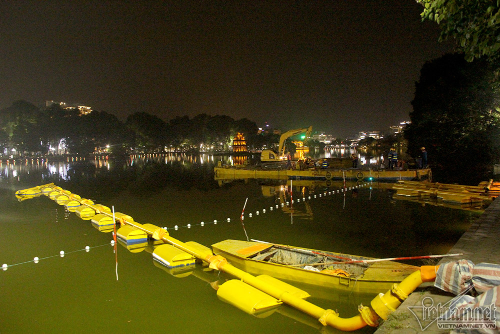 Theo kế hoạch, tổng khối lượng nạo vét ở hồ Gươm là 57.400m3, mỗi ngày khoảng 1.000m3 bùn đất, diện tích khu vực nạo vét bùn là 9,7ha.