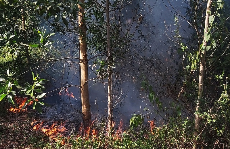 Thời điểm trên, gió lớn và lớp thực bì dày đặc bên dưới khiến ngọn lửa bùng phát dữ dội, có nguy cơ lan sang nhà dân.