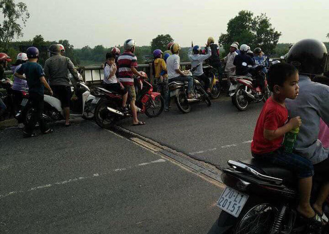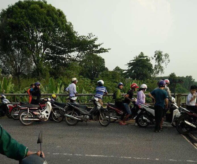 Nhiều người dân hiếu kì đứng trên cầu theo dõi vụ việc.