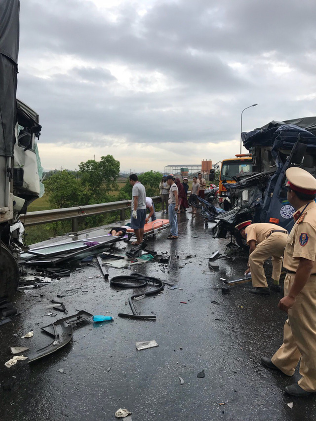 Tại hiện trường, cả 3 ô tô đều hư hỏng nặng, đầu xe bẹp dúm, nhiều mảnh vỡ vung vãi trên đường. Đội cứu nạn cứu hộ phải dùng máy cắt đưa người bị nạn ra ngoài, chuyển 2 nạn nhân bị thương nặng đến bệnh viện cấp cứu.