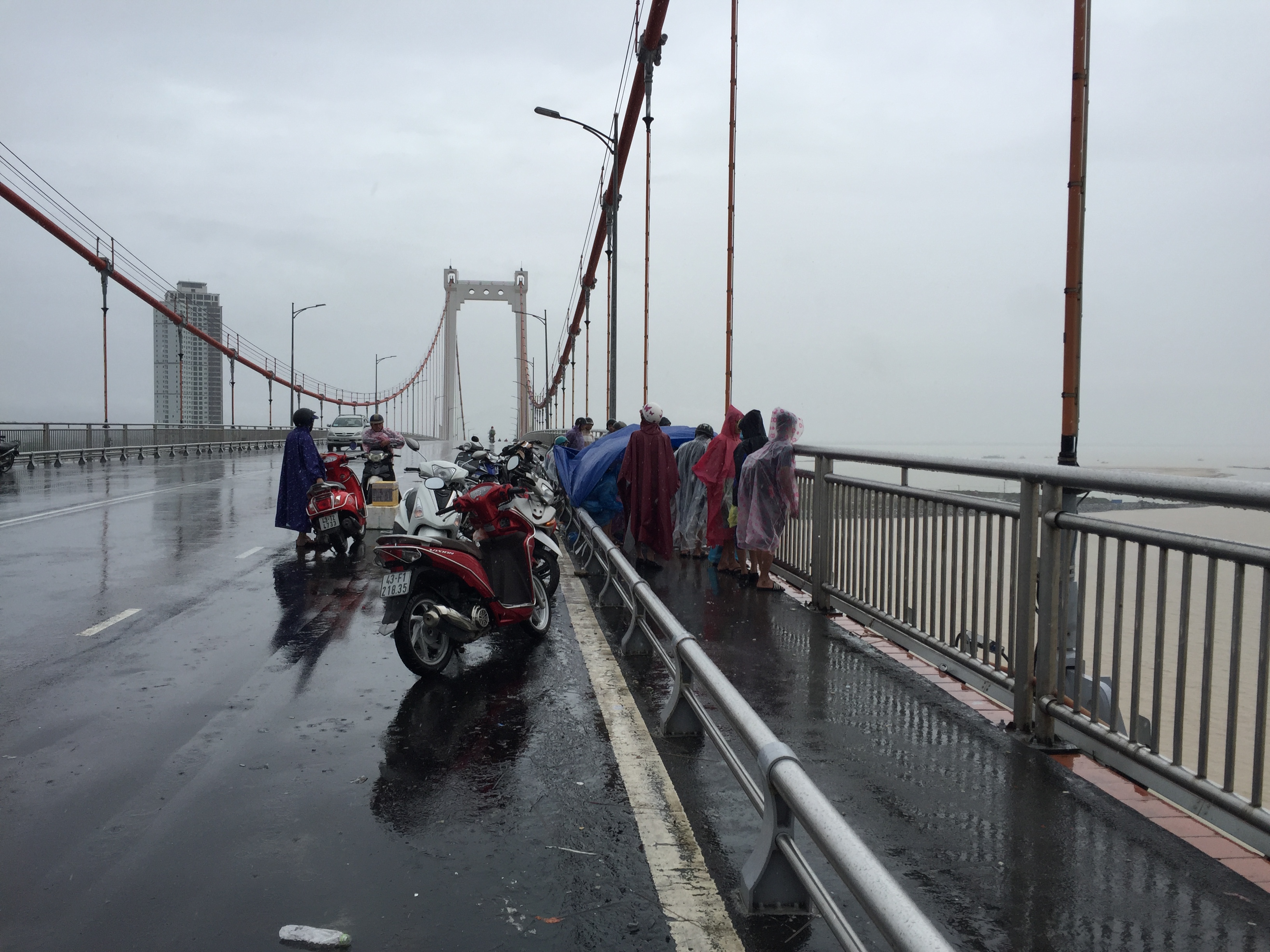Người thân túc trực trên cầu Thuận Phước để ngóng chờ tin tức của các nạn nhân.