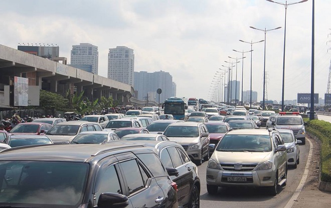 Tại hiện trường, 4 chiếc xe nằm chắn hết một làn đường ô tô khiến giao thông quanh khu vực cầu Sài Gòn tắc nghẽn nghiêm trọng, kẹt cứng kéo dài hơn 2km. Các tuyến đường Xa Lộ Hà Nội, Điện Biên Phủ, Nguyễn Hữu Cảnh bị tắc nghẽn nghiêm trọng nhiều giờ liền.