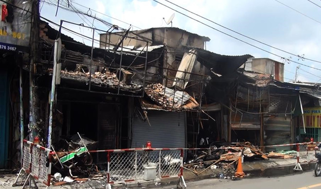Đến 4h, vụ hỏa hoạn được khống chế. Sự việc không gây thương vong về người nhưng khiến tài sản trong 5 cửa hàng bị thiêu rụi, tường gạch đổ sập. Vụ cháy cũng làm đường điện, cáp viện thông phía trên bị đứt.