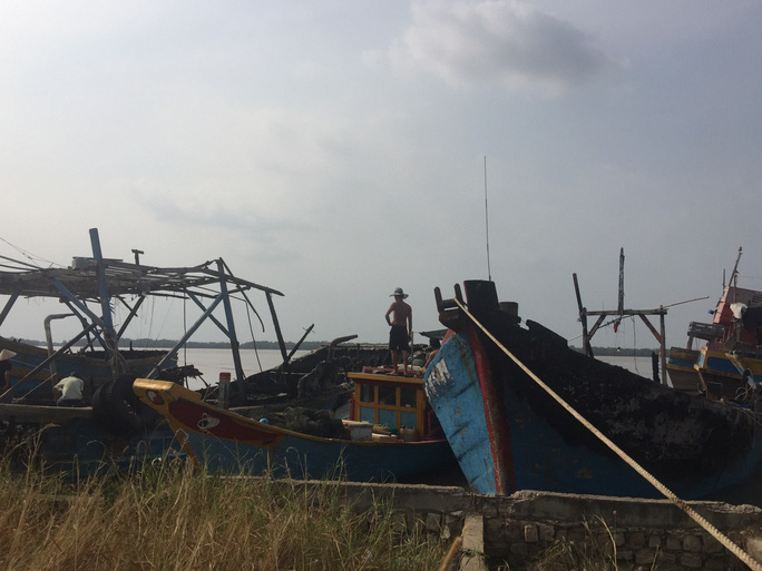 Hiện trường tàu cá của ngư dân bị bốc cháy. Ảnh: Báo Người Lao Động