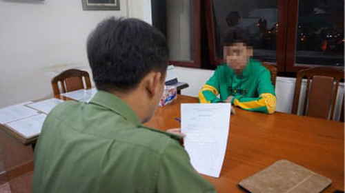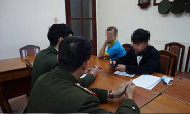 Cơ quan công an triệu tập làm việc với học sinh có hành vi làm giả phiếu xét nghiệm bệnh nhân nhiễm virus corona. Ảnh: Công an cung cấp