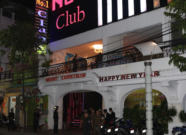 Quán Bar No.1 bị cảnh sát phong toả, kiểm tra. Ảnh: Minh Anh.