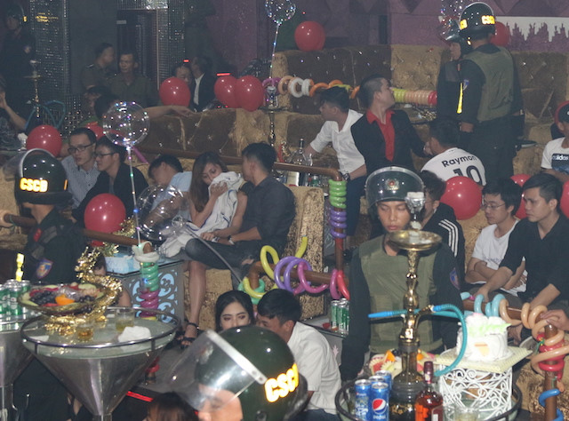 Thời điểm công an kiểm tra quán bar. Ảnh: Minh Anh.