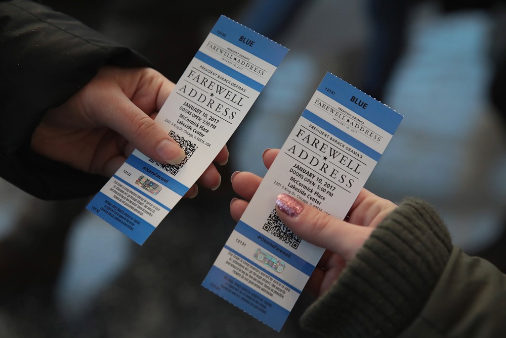 Hôm 7/1, hàng nghìn người đã xếp hàng trước trung tâm hội nghị McCormick Place ở thành phố Chicago (bang Illinois, Mỹ) để có được tấm vé dự buổi phát biểu chia tay của Tổng thống Barack Obama trước khi kết thúc nhiệm kỳ. Ảnh: Getty.