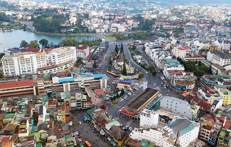 Khu trung tâm Đà Lạt nhìn từ trên cao. Ảnh: Quỳnh Trần.