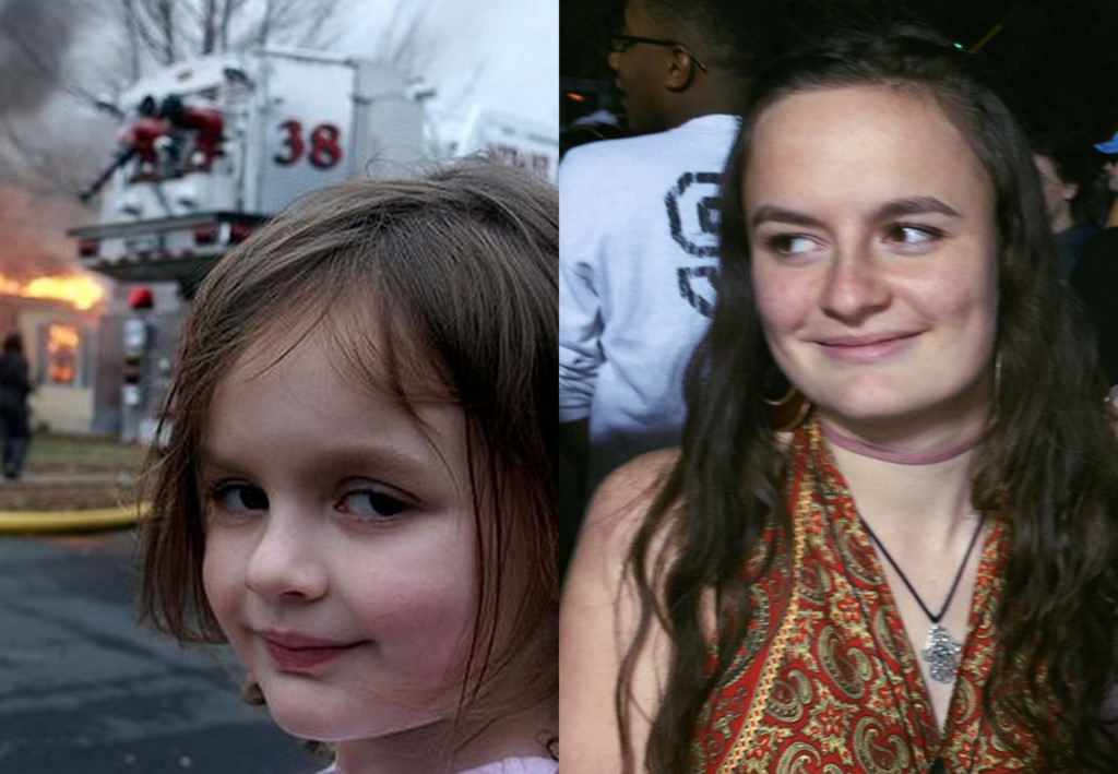 Zoe Roth hay “Cô bé thảm họa” (17 tuổi) nổi tiếng vì biểu cảm “nguy hiểm” khi đứng gần một căn nhà đang cháy. Bức ảnh được cha cô chụp vào tháng 1/2004. 13 năm sau, gương mặt của Zoe có nhiều nét thay đổi, song ánh mắt của cô dường như vẫn sắc sảo như ngày nào.