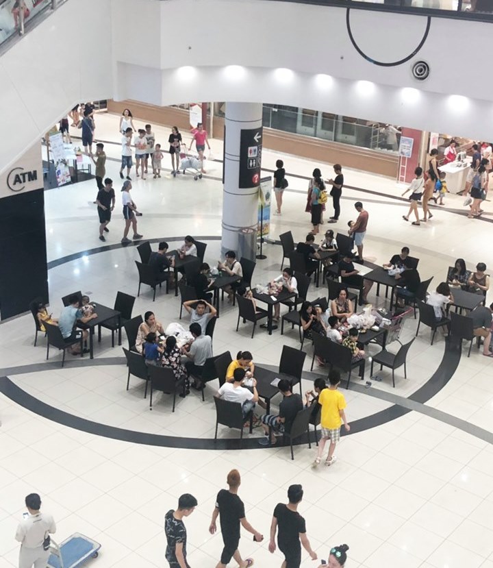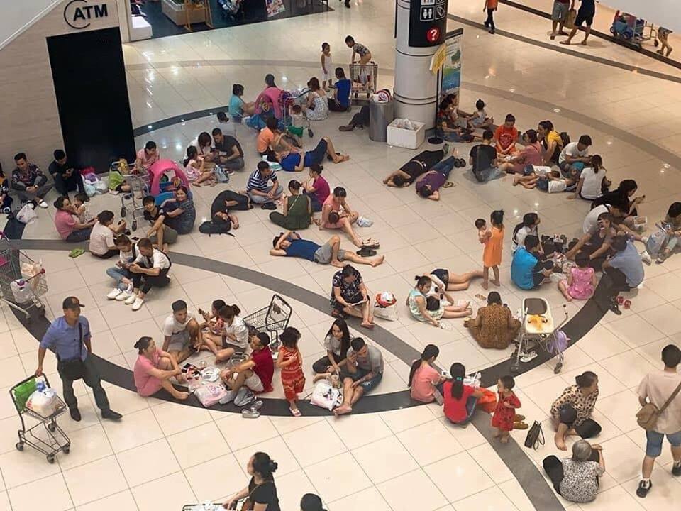 Tuy nhiên, chính vì ai cũng có tâm lý đến trung tâm thương mại vừa vui chơi, vừa tận hưởng không khí mát lạnh nên ở một số trung tâm thương mại đã xảy ra tình trạng quá tải. Đáng chú ý, người dân còn mang theo đồ ăn thức uống đến và ngồi lê lết dưới sàn vừa “mở tiệc” vừa tránh nóng.