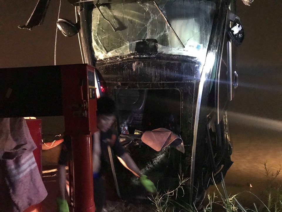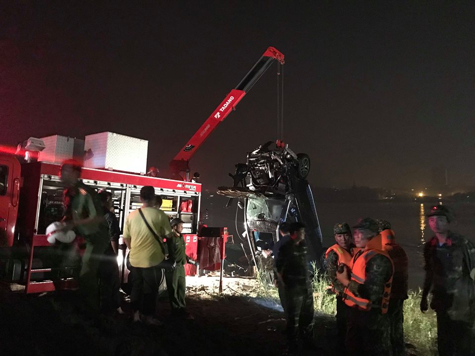 Đến 2 giờ sáng 4/11, lực lượng cứu hộ đã trục vớt được chiếc gặp nạn. Ban đầu xác nhận trong xe có 2 người (1 nam, 1 nữ) đã tử vong.