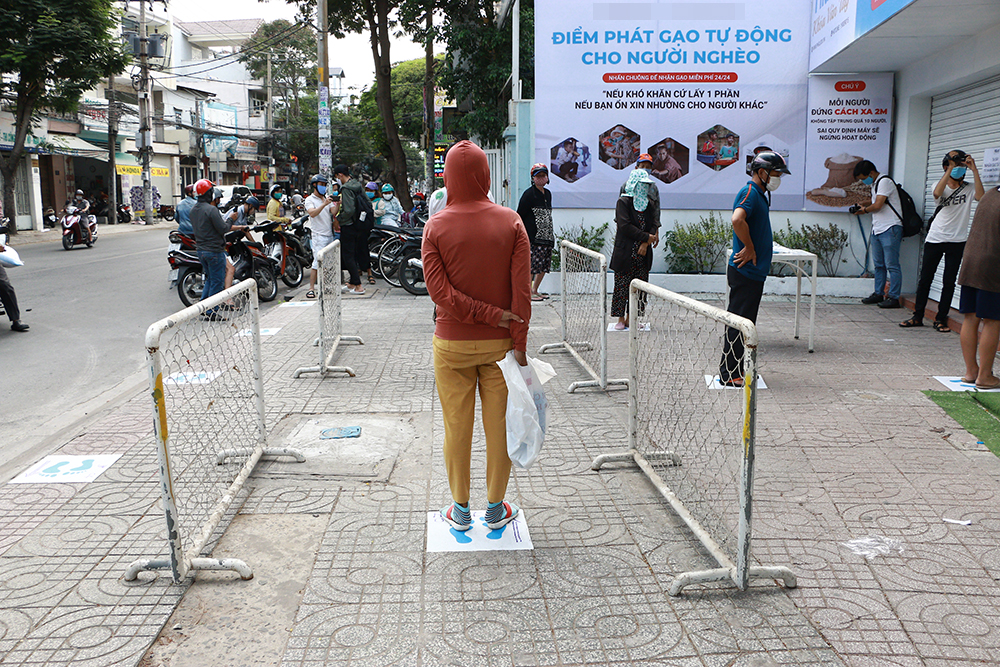 Trong khi đó, chú Trần Trọng Hàn - cựu chiến binh ngụ tại quận Tân Phú, rưng rưng nước mắt khi nhận gạo từ thiện tại “ATM gạo”. Chú cho biết mình đã ngoài 70 tuổi, mất sức lao động nên khi biết có điểm phát gạo từ thiện, chú rất vui và nhanh chóng đến nhận. Chú Hàn bày tỏ sự biết ơn sâu sắc đến các nhà hảo tâm, mạnh thường quân và người đã nghĩ ra sáng kiến phát gạo bằng máy để cứu giúp người có hoàn cảnh khó khăn vượt qua nghịch cảnh.