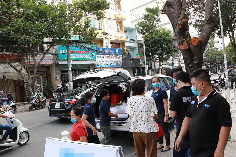 Cô Lê Thị Duyên (ngụ huyện Củ Chi) cho biết sau khi được người quen chỉ dẫn, cô phải đi mất mấy giờ mới đến được đây, những ngày qua cô đã tìm nhiều nơi phát đồ từ thiện để đến nhận do mùa dịch kéo dài, kinh tế gia đình cô gặp nhiều khó khăn. Cô Duyên vô cùng hạnh phúc khi cầm trên tay túi gạo nghĩa tình và hi vọng hành động nhân đạo này sẽ ngày càng được lan rộng hơn.