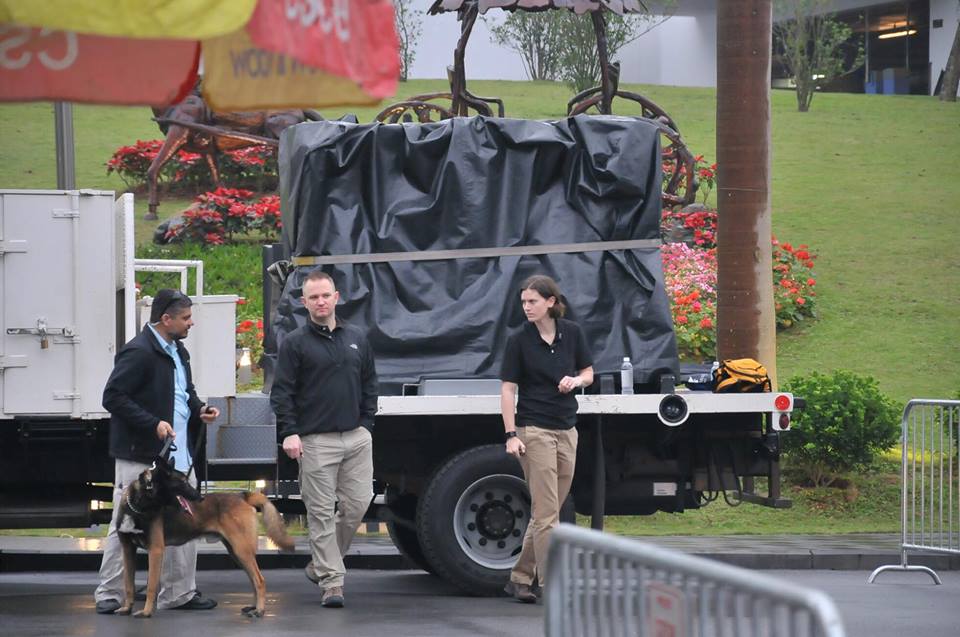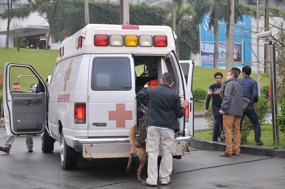 Chó nghiệp vụ cũng được đưa đến để kiểm tra an ninh tại khu vực khách sạn Marriott.