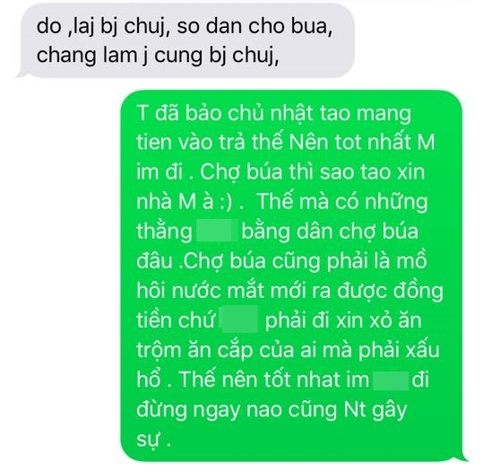 Tuy nhiên đâu có tiền là giải quyết được tất cả, chàng trai vẫn chưa muốn buông tha, nhắn tin kiếm chuyện liên tục khiến cô gái tức điên, phải đổi giọng sang mày - tao, chửi bới đủ kiểu mà vẫn chẳng xi nhê gì, mới phải tìm đến cư dân mạng nhờ xử lý.